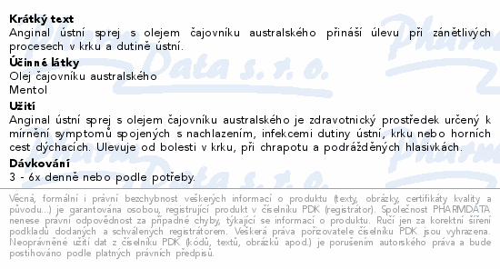 Anginal ústní sprej s olejem čajovníku australského přináší úlevu při zánětlivých procesech v krku a dutině ústní.