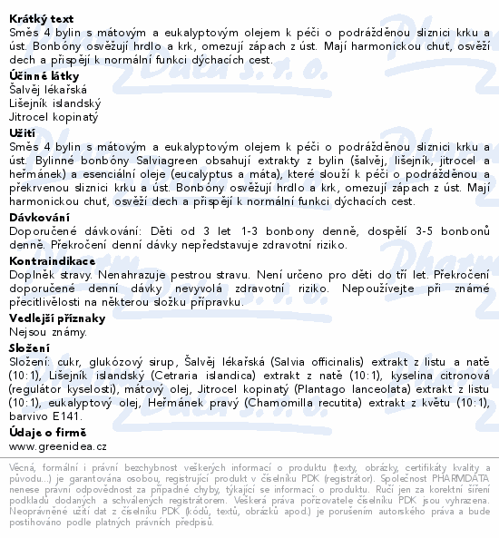 Směs 4 bylin s mátovým a eukalyptovým olejem k péči o podrážděnou sliznici krku a úst. Bonbóny osvěžují hrdlo a krk, omezují zápach z úst. Mají harmonickou chuť, osvěží dech a přispějí k normální funkci dýchacích cest.