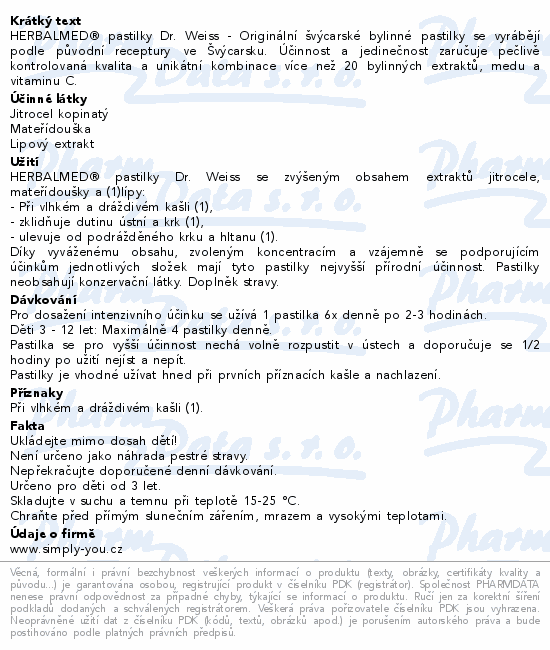 HERBALMED® pastilky Dr. Weiss - Originální švýcarské bylinné pastilky se vyrábějí podle původní receptury ve Švýcarsku. Účinnost a jedinečnost zaručuje pečlivě kontrolovaná kvalita a unikátní kombinace více než 20 bylinných extraktů, medu a vitaminu C.