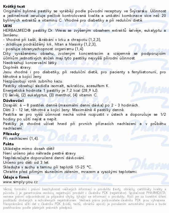 Originální bylinné pastilky se vyrábějí podle původní receptury ve Švýcarsku. Účinnost a jedinečnost zaručuje pečlivě kontrolovaná kvalita a unikátní kombinace více než 20 bylinných extraktů a vitaminu C. Vhodné pro diabetiky a při redukční dietě.