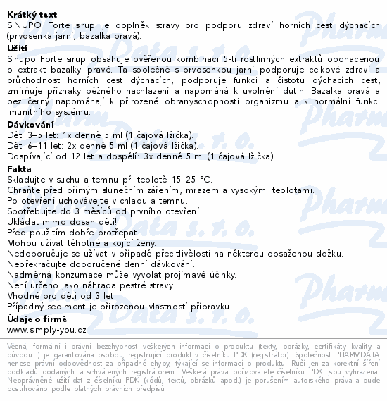 SINUPO Forte sirup je doplněk stravy pro podporu zdraví horních cest dýchacích (prvosenka jarní, bazalka pravá).