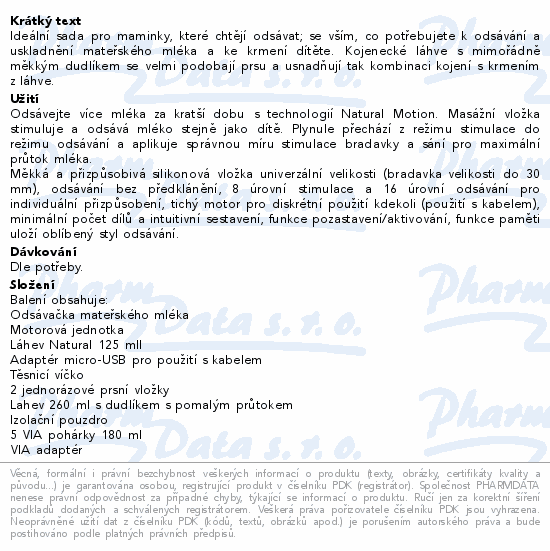 AVENT Odsávačka mat.ml.Natural elektr.Single set