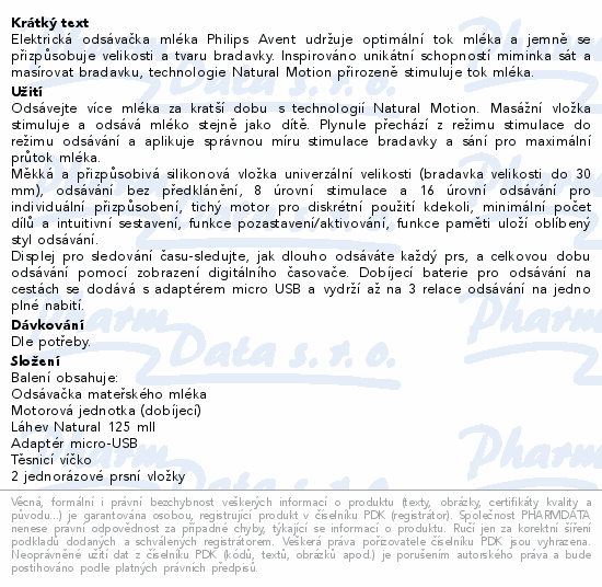 AVENT Odsávačka mat.ml.Natural elektronic.Premium