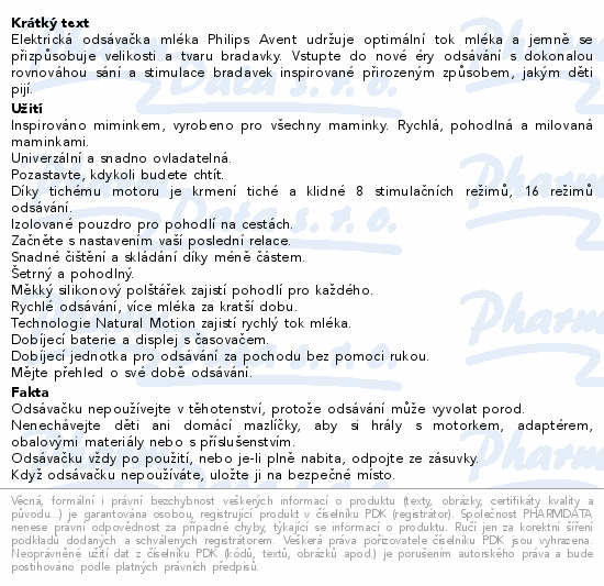 Philips AVENT Odsávačka mateř.ml.elek.nabíj.SCF396
