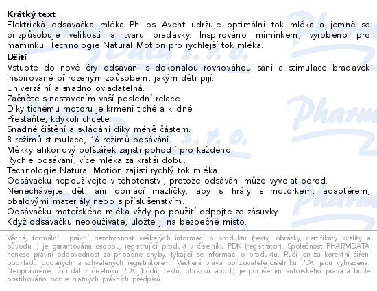Elektrická odsávačka mléka Philips Avent udržuje optimální tok mléka a jemně se přizpůsobuje velikosti a tvaru bradavky. Inspirováno miminkem, vyrobeno pro maminku. Technologie Natural Motion pro rychlejší tok mléka.