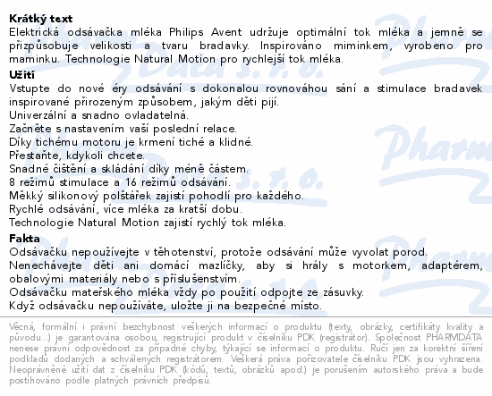 Elektrická odsávačka mléka Philips Avent udržuje optimální tok mléka a jemně se přizpůsobuje velikosti a tvaru bradavky. Inspirováno miminkem, vyrobeno pro maminku. Technologie Natural Motion pro rychlejší tok mléka.