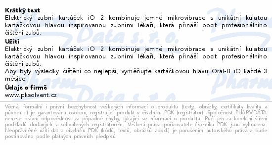 Elektrický zubní kartáček iO 2 kombinuje jemné mikrovibrace s unikátní kulatou kartáčkovou hlavou inspirovanou zubními lékaři, která přináší pocit profesionálního čištění zubů.