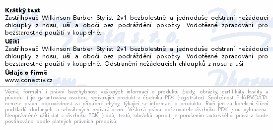 Zastřihovač Wilkinson Barber Stylist 2v1 bezbolestně a jednoduše odstraní nežádoucí chloupky z nosu, uší a obočí bez podráždění pokožky. Vodotěsné zpracování pro bezstarostné použití v koupelně.