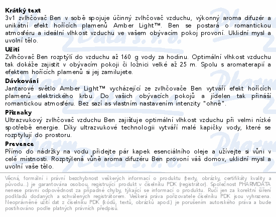 3v1 zvlhčovač Ben v sobě spojuje účinný zvlhčovač vzduchu, výkonný aroma difuzér a unikátní efekt hořících plamenů Amber Light™. Ben se postará o romantickou atmosféru a ideální vlhkost vzduchu ve vašem obývacím pokoj provoní. Uklidní mysl a uvolní tělo.