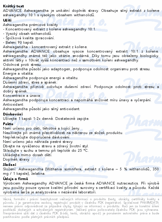 Ashwagandha ADVANCE je unikátní doplněk stravy. Obsahuje silný extrakt z kořene ashwagandhy s vysokým obsahem withanolidů.