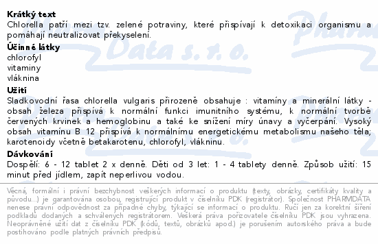 Chlorella patří mezi tzv. zelené potraviny, které přispívají k detoxikaci organismu a pomáhají neutralizovat překyselení.