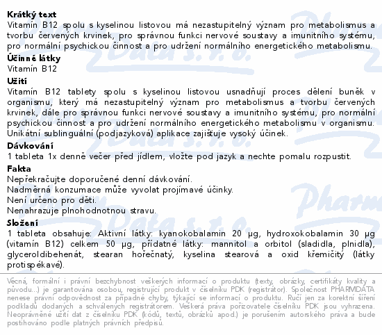 Vitamín B12 spolu s kyselinou listovou má nezastupitelný význam pro metabolismus a tvorbu červených krvinek, pro správnou funkci nervové soustavy a imunitního systému, pro normální psychickou činnost a pro udržení normálního energetického metabolismu.