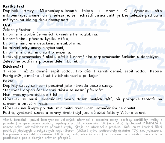 Doplněk stravy. Mikroenkapsulované železo + vitamin C. Výhodou této mikroenkapsulované formy železa je, že nedráždí trávicí trakt, je bez železité pachuti a má vysokou biologickou dostupnost.