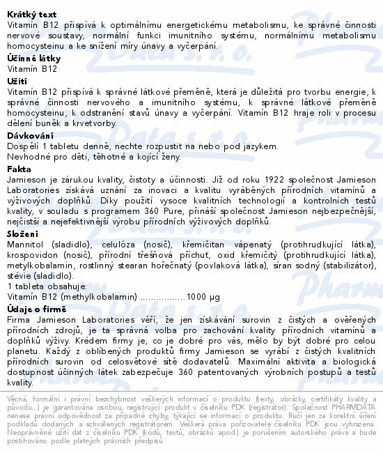 JAMIESON Vitamín B12 1000mcg třešeň tbl.100