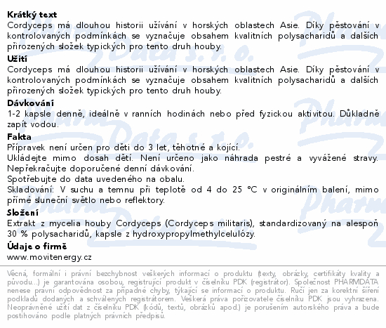 MOVit Cordyceps 30% polysacharidů 500mg cps.90