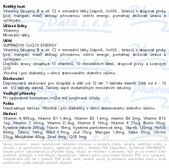 Vitamíny (skupiny B a vit. C) + minerální látky (vápník, hořčík , železo) + stopové prvky (jód, mangan, měď) aktivují přirozenou vnitřní energii, pomáhají snižovat únavu a vyčerpání.