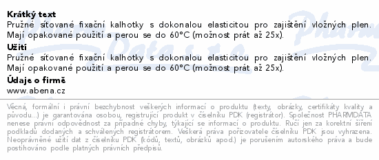 Pružné síťované fixační kalhotky s dokonalou elasticitou pro zajištění vložných plen. Mají opakované použití a perou se do 60°C (možnost prát až 25x).
