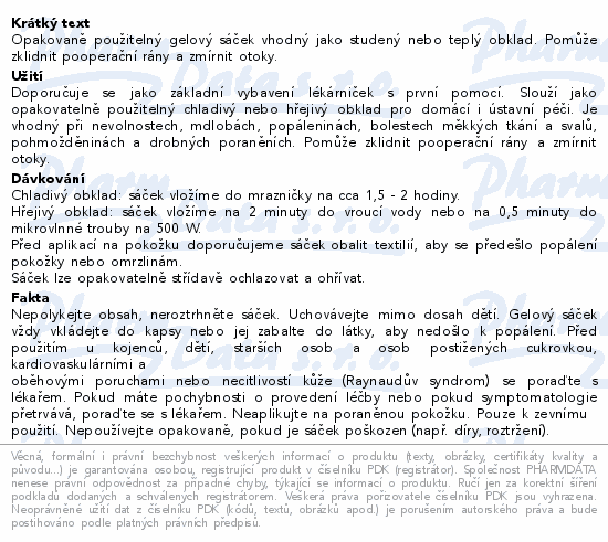 Opakovaně použitelný gelový sáček vhodný jako studený nebo teplý obklad. Pomůže zklidnit pooperační rány a zmírnit otoky.
