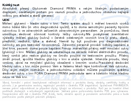 Absolutně přesný Glukometr Diamond PRIMA s vekým čitelným podsvíceným displejem, osvětleným portem pro vsunutí proužku a jednoduchou obsluhou nejlepší volbou pro střední a starší generaci.