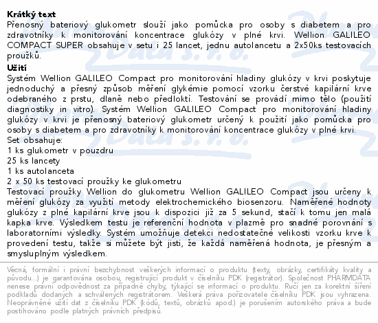 Wellion GALILEO COMPACT SUPER glukometr set+lanc.