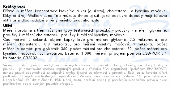 Přístroj k měření koncentrace krevního cukru (glukózy), cholesterolu a kyseliny močové. Díky přístroji Wellion Luna Trio můžete ihned zjistit, jaké pozitivní dopady mají tělesná aktivita a dlouhodobé změny vašeho životního stylu.