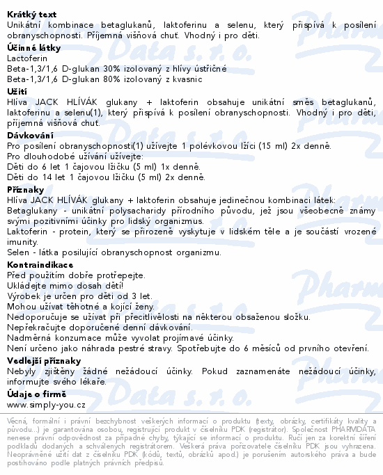 Hliva JACK HLIVAK sirup 300ml glukany +