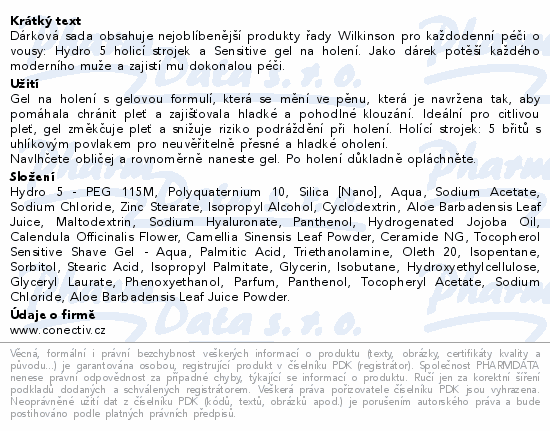Dárková sada obsahuje nejoblíbenější produkty řady Wilkinson pro každodenní péči o vousy: Hydro 5 holicí strojek a Sensitive gel na holení. Jako dárek potěší každého moderního muže a zajistí mu dokonalou péči.