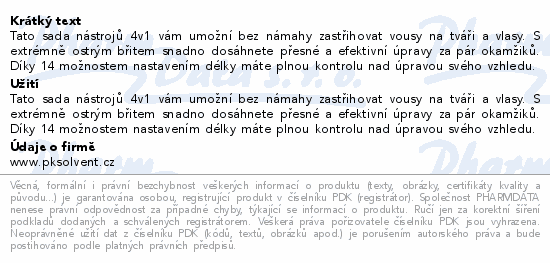 Tato sada nástrojů 4v1 vám umožní bez námahy zastřihovat vousy na tváři a vlasy. S extrémně ostrým břitem snadno dosáhnete přesné a efektivní úpravy za pár okamžiků. Díky 14 možnostem nastavením délky máte plnou kontrolu nad úpravou svého vzhledu.