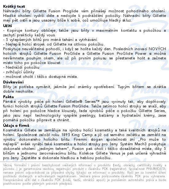 Náhradní břity Gillette Fusion Proglide vám přinášejí možnost pohodlného oholení. Hladké oholení vydrží déle a nedojde k podráždění pokožky. Náhradní břity Gillette mají pět ostří a jsou usazeny blíže k sobě, což umožňuje hladký skluz.