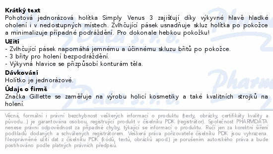 Pohotová jednorázová holítka Simply Venus 3 zajišťují díky výkyvné hlavě hladké oholení i v nedostupných místech. Zvlhčující pásek usnadňuje skluz holítka po pokožce a minimalizuje případné podráždění. Pro dokonale hebkou pokožku!