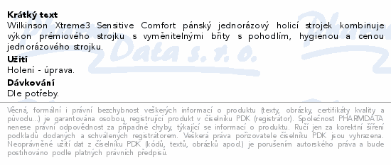 Wilkinson Xtreme3 Sensitive Comfort pánský jednorázový holicí strojek kombinuje výkon prémiového strojku s vyměnitelnými břity s pohodlím, hygienou a cenou jednorázového strojku.