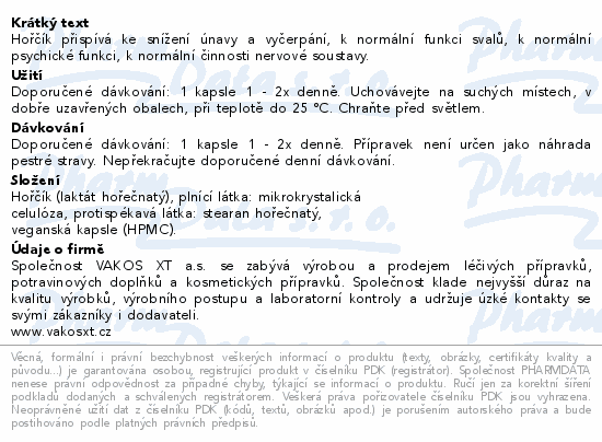 Přípravek obsahuje hořčík s maximální biologickou dostupností. Používá se jako zdroj hořčíku, který má vliv na funkci nervového systému a nervosvalový přenos. Dostatek hořčíku pomáhá při prevenci svalových křečí.