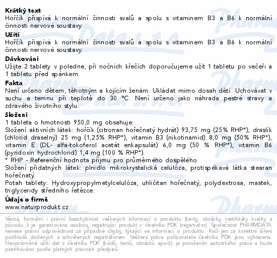 Hořčík přispívá k normální činnosti svalů a spolu s vitaminem B3 a B6 k normální činnosti nervové soustavy.