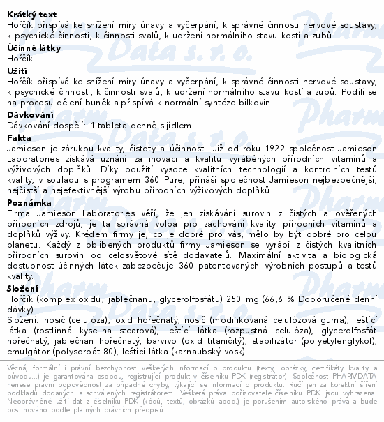 Hořčík přispívá ke snížení míry únavy a vyčerpání, k správné činnosti nervové soustavy, k psychické činnosti, k činnosti svalů, k udržení normálního stavu kostí a zubů.