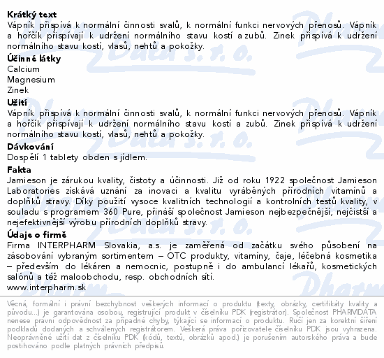 Vápník přispívá k normální činnosti svalů, k normální funkci nervových přenosů. Vápník a hořčík přispívají k udržení normálního stavu kostí a zubů. Zinek přispívá k udržení normálního stavu kostí, vlasů, nehtů a pokožky.