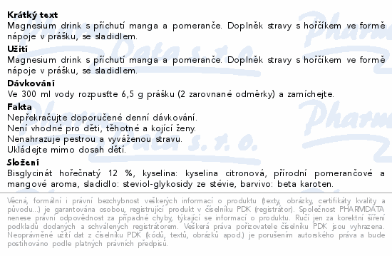 Magnesium drink s příchutí manga a pomeranče. Doplněk stravy s hořčíkem ve formě nápoje v prášku, se sladidlem.