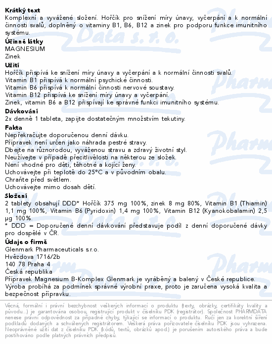 Komplexní a vyvážené složení. Hořčík pro snížení míry únavy, vyčerpání a k normální činnosti svalů, doplněný o vitaminy B1, B6, B12 a zinek pro podporu funkce imunitního systému.
