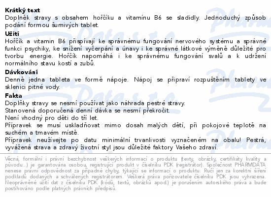 Doplněk stravy s obsahem hořčíku a vitamínu B6 se sladidly. Jednoduchý způsob podání formou šumivých tablet.
