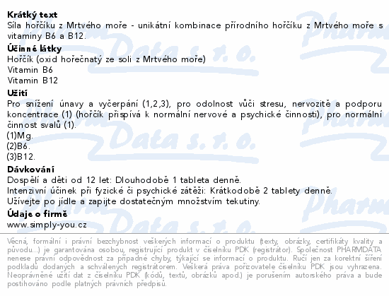 Síla hořčíku z Mrtvého moře - unikátní kombinace přírodního hořčíku z Mrtvého moře s vitaminy B6 a B12.
