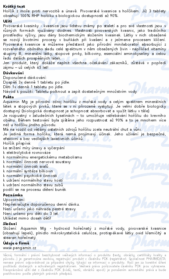 Hořčík z moře proti nervozitě a únavě. Pivovarské kvasnice s hořčíkem. Již 3 tablety obsahují 100% RHP hořčíku s biologickou dostupností až 90%.