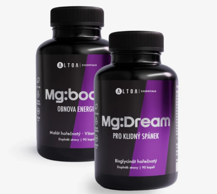 Hořčíky tak, jak je vaše tělo potřebuje - Nyní ve zvýhodněném balení Energie přes den, regenerace v noci. Balíček VITALMAG DUO kombinuje dvě formy hořčíku, které společně pomáhají udržet tělo i mysl v rovnováze. Podporují energii, soustředění a psychickou odolnost během dne — a zároveň napomáhají klidnému spánku a regeneraci přes noc. Vhodné pro aktivní, vytížené i citlivější jedince.