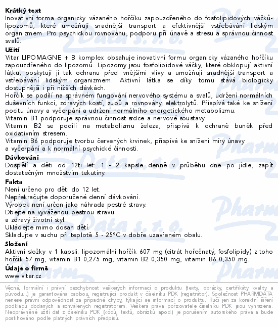 Inovativní forma organicky vázaného hořčíku zapouzdřeného do fosfolipidových váčků- lipozomů, které umožňují snadnější transport a efektivnější vstřebávání lidským organizmem. Pro psychickou rovnováhu, podporu pří únavě a stresu a správnou činnost svalů.