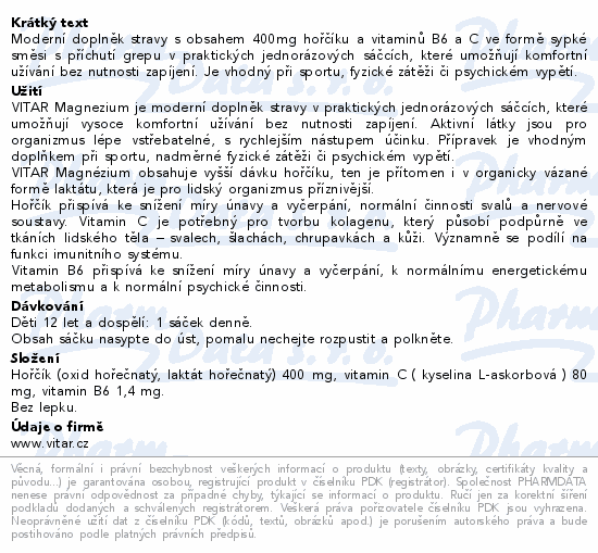 Vitar Magnézium 400mg+vit.B6+vit.C grep sáč.20x2g