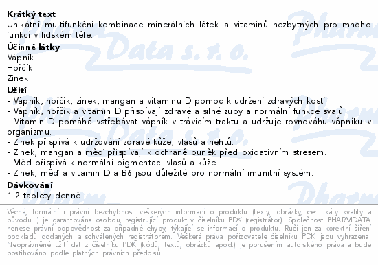 Unikátní multifunkční kombinace minerálních látek a vitaminů nezbytných pro mnoho funkcí v lidském těle.