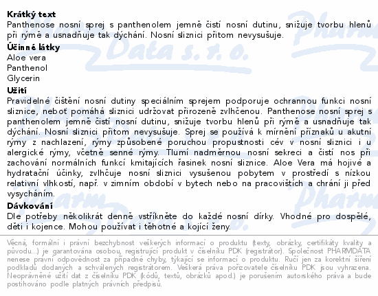 Panthenose nosní sprej s panthenolem jemně čistí nosní dutinu, snižuje tvorbu hlenů při rýmě a usnadňuje tak dýchání. Nosní sliznici přitom nevysušuje.