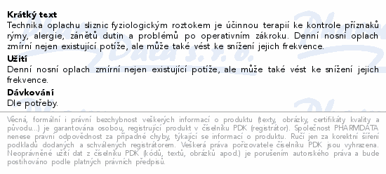 Technika oplachu sliznic fyziologickým roztokem je účinnou terapií ke kontrole příznaků rýmy, alergie, zánětů dutin a problémů po operativním zákroku. Denní nosní oplach zmírní nejen existující potíže, ale může také vést ke snížení jejich frekvence.