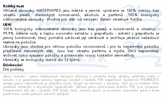 WATERWIPES 100% bioodbouratelné ubrousky 9x60ks