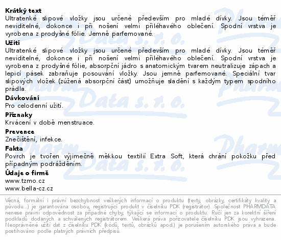 Ultratenké slipové vložky jsou určené především pro mladé dívky. Jsou téměř neviditelné, dokonce i při nošení velmi přiléhavého oblečení. Spodní vrstva je vyrobena z prodyšné fólie. Jemně parfemované.