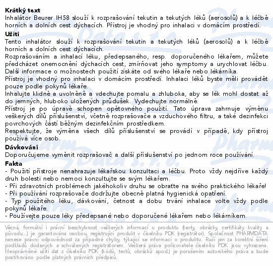 Inhalátor Beurer IH58 slouží k rozprašování tekutin a tekutých léků (aerosolů) a k léčbě horních a dolních cest dýchacích. Přístroj je vhodný pro inhalaci v domácím prostředí.