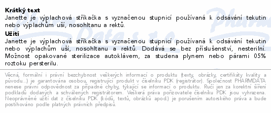 Janette je výplachová stříkačka s vyznačenou stupnicí používaná k odsávání tekutin nebo výplachům uší, nosohltanu a rektů.